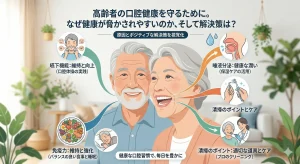 高齢者の健やかな生活を支える「お口の衛生管理」と、介護現場でスタッフが直面するリアルな悩みを解決するための正しい口腔ケアの知識をまとめています。「口を開けてくれない」「指を噛まれる危険がある」「うがいでむせてしまう」といった日常的なケアのトラブルに対する安全な対処法や、最新のケアテクニックを分かりやすく解説します。