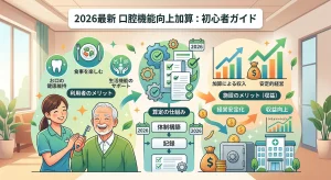 2026年の介護報酬改定やLIFEの推進により、口腔機能向上加算は施設経営において「絶対に取るべき加算」となりました。対象者30名の施設であれば、年間約100万円以上の安定した収益基盤となります。